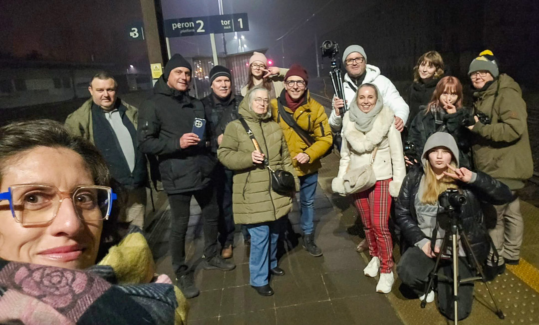 Kolejną częścią spotkania był spacer ulicami miasta, który zakończył się na dworcu kolejowym. Tam tematem przewodnim było uchwycenie rozmytych świateł przejeżdżającego pociągu.